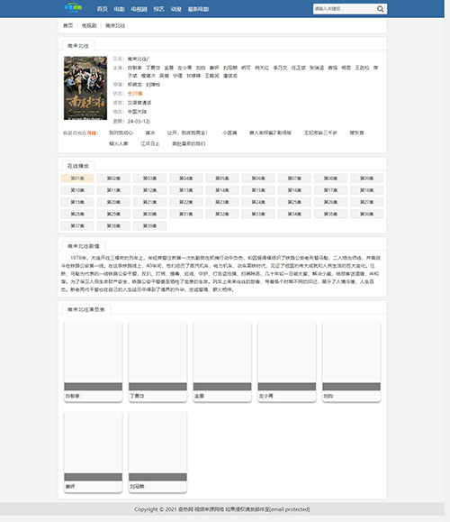 经典蓝色简约设计,代码兼容pc、wap自适应访问,特别适合于影视网站,推荐模板!