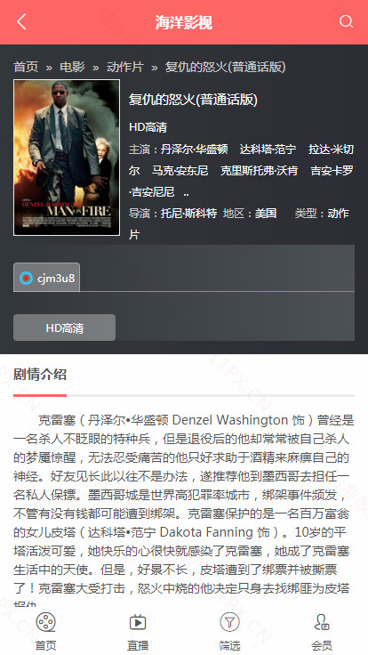 网站模板包含首页、电影列表页、内容页、播放页。网站模板基于海洋CMS开发,UTF-8编码。模板首页调用需要修改,部分样式有兼容问题,有能力的朋友可以自行下载修改。