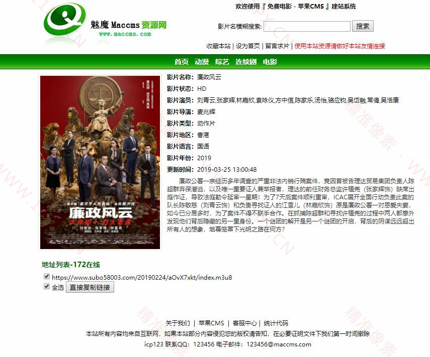 苹果cmsV10绿色电影资源站模板
