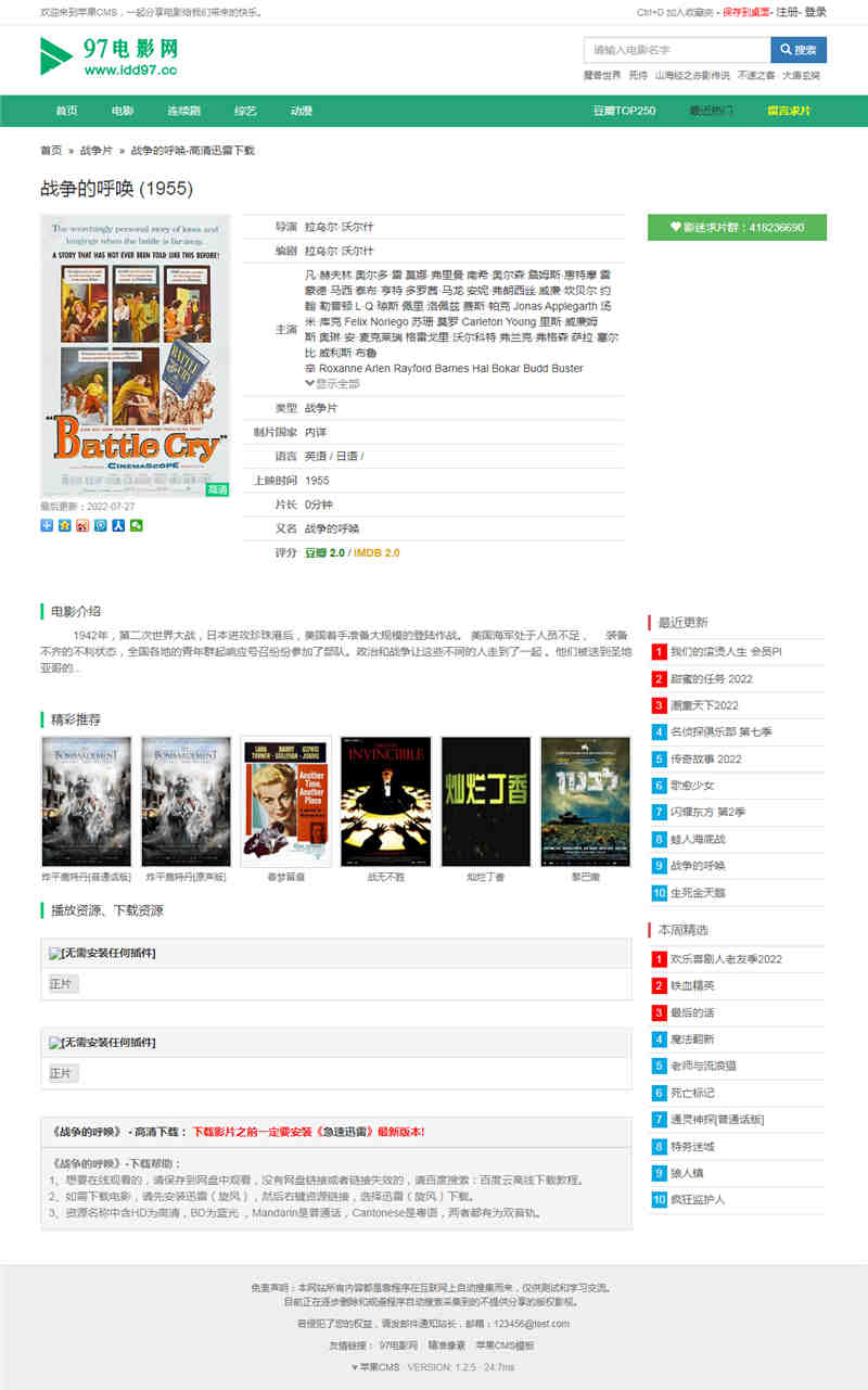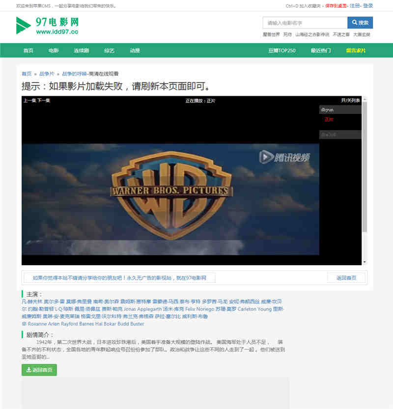 苹果CMS模板简介:仿迅影网苹果CMS8X模板,仿迅影网主题风格,苹果cmsV8版本,电脑端,绿色风格,已测试,完美无错。只有电脑端,不自适应手机端。模板只包含首页、列表、内容页、播放页。资源截图:下载地址:https://pan.baidu.com/s/1reYVmTu8bTMZHM2o6ZS3hw?pwd=nnbb