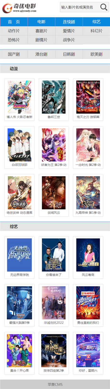 | 苹果CMS模板介绍: 苹果CMS仿奇优电影网苹果CMS模板,苹果CMSV8模板,仿奇优电影网主题模板,免费下载。 苹果CMS模板安装教程:上传template,后台网站模板电脑端选择qiyoudy模板,手机端选择qiyoudy-wap,模板目录为kao 资源截图: |