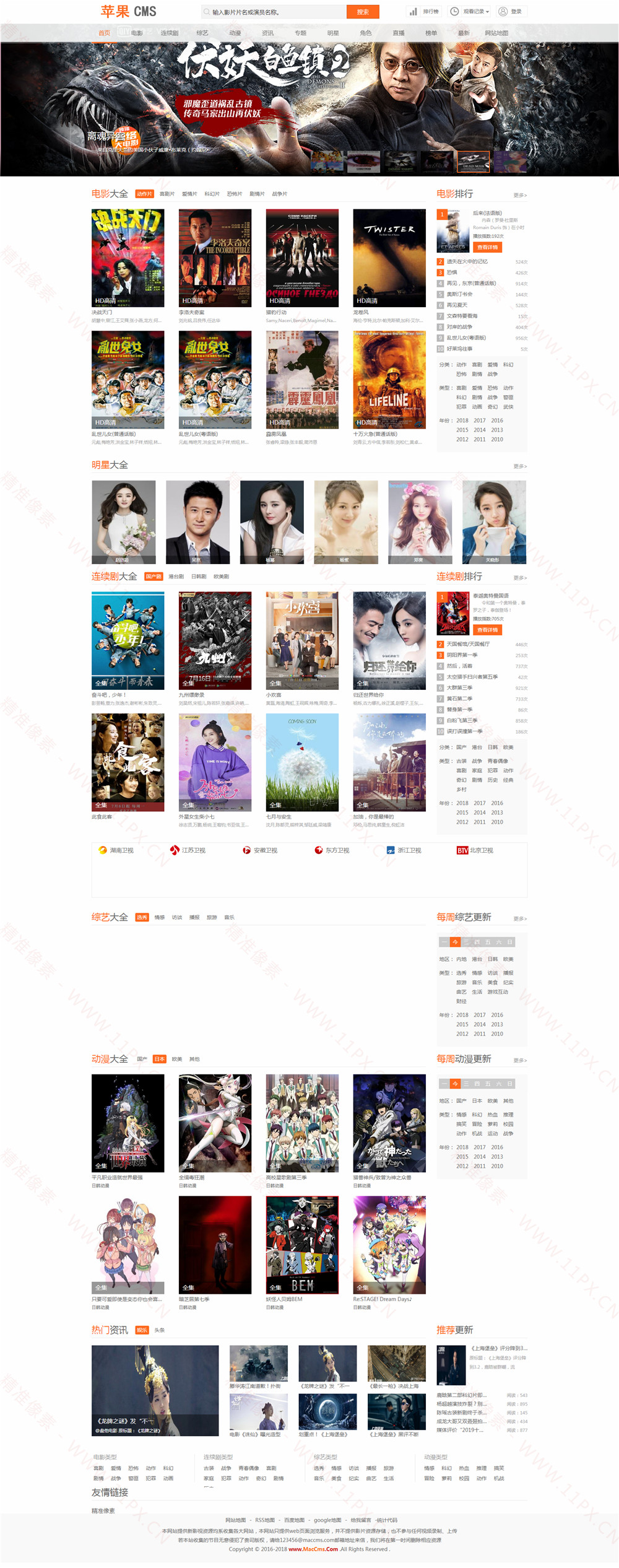 一款橙色风格的苹果CMS模板,苹果CMSV10版本,免费下载。