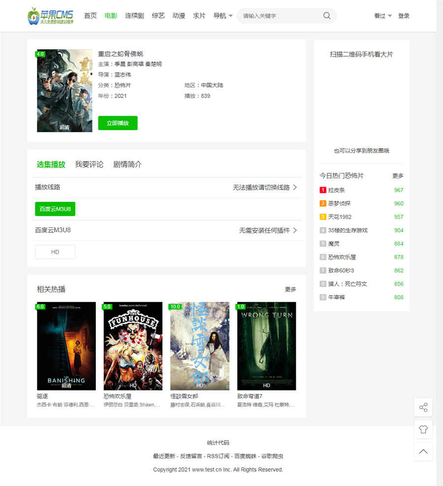 之前分享过一款苹果CMSV10版本的通用主题模板和这款非常像,只有少许部分地方不同。