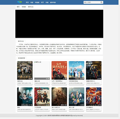 经典蓝色简约设计,代码兼容pc、wap自适应访问,特别适合于影视网站,推荐模板!