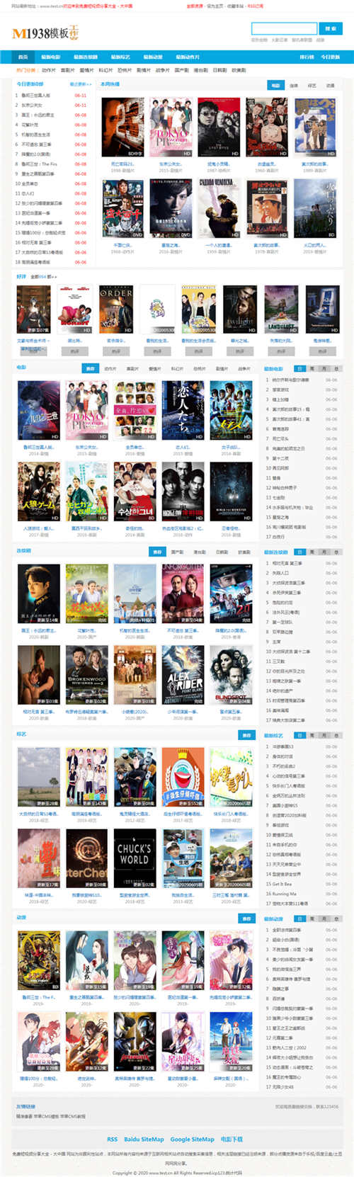 | 苹果CMS模板简介: m1938电脑+手机双端影视网站模板,电脑+手机双端,苹果CMSV10模板,免费下载。 苹果CMS模板安装教程:1.将模板m1938pc和m1938wep上传至网站template文件夹内。 2.登陆苹果cms后台-系统管理-当前使用模板-pc选择M1938pc 手机选择,m1938wep 3.模板html目录更换为:html9 6.点击数据缓存更新,内存数据更新,文件缓存更新。 7.点击站点首页查看效果吧! 资源截图: |