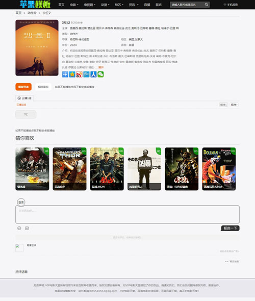 这款模板已经完美无错,删除了部分失效代码,模板包含影视模块和新闻模块,模板包含畅言的评论代码,不需要的可以删除,具体大家看演示截图就行。