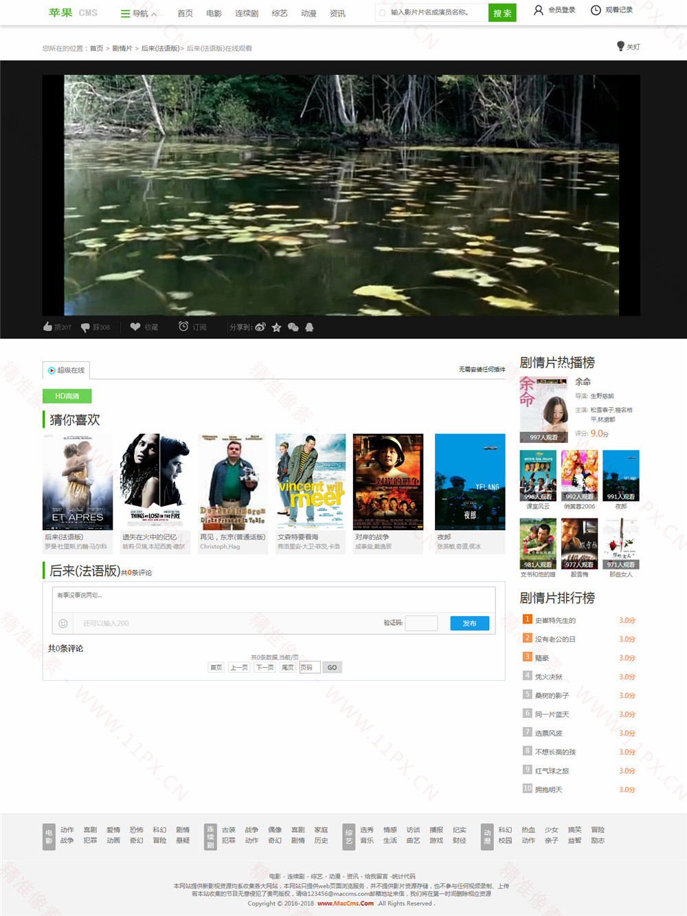 网站模板分为首页、电影列表、电影内容页、电影播放页、新闻列表页、新闻内容页、最新更新、网站地图、排行榜。