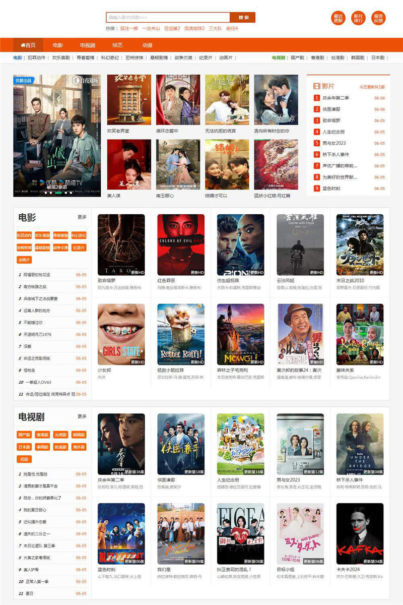 仿西瓜影院苹果CMS影视模板,一款轻量化的模板,仿西瓜影院专题,苹果CMSV10模板,自适应手机端,影视模板,优点是调用文件少加载速度快且整体结构利于SEO收录。